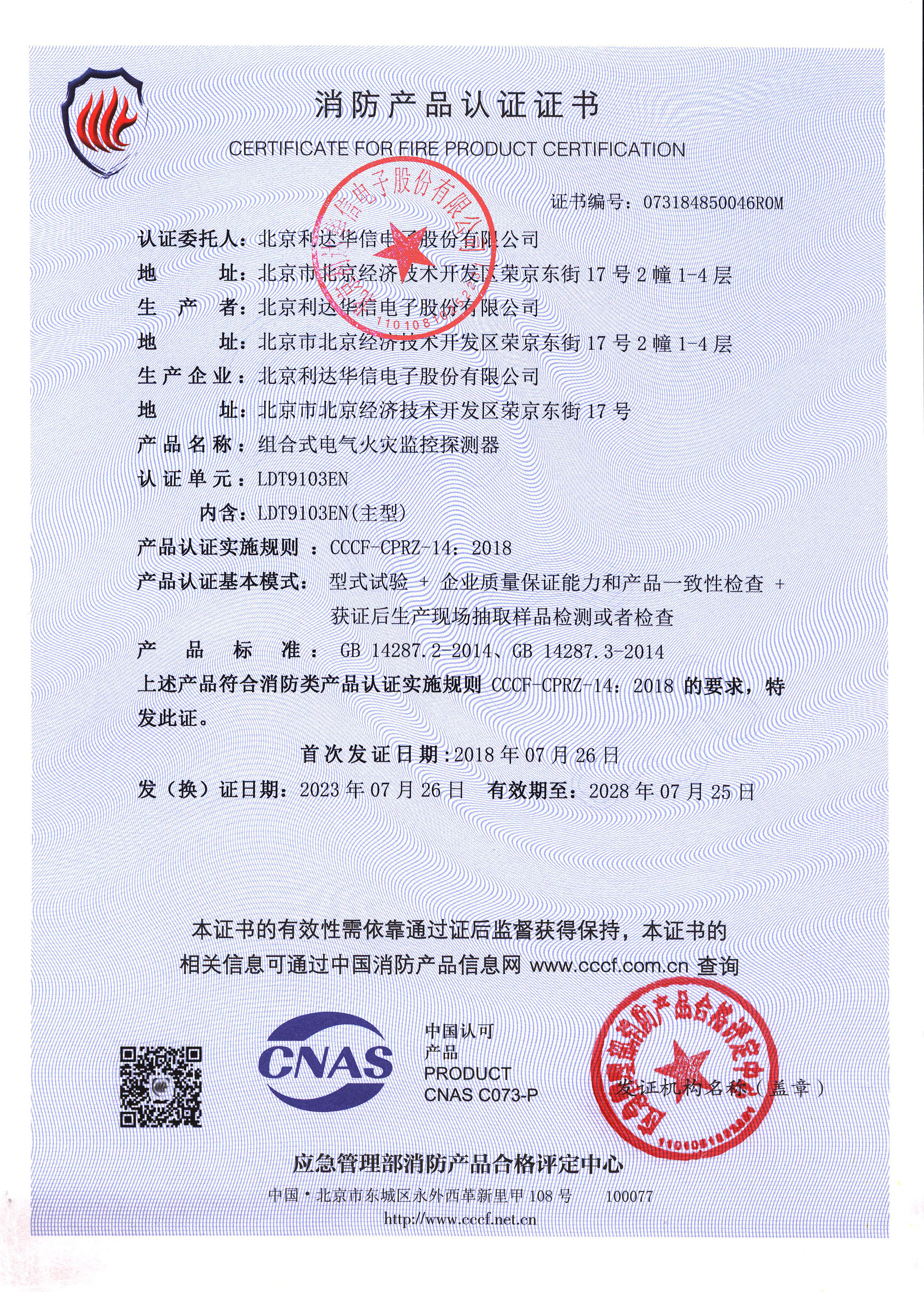 LDT9103EN 組合式電氣火災監控探測器 消防產品認證證書073184850046ROM(蓋公章).jpg
